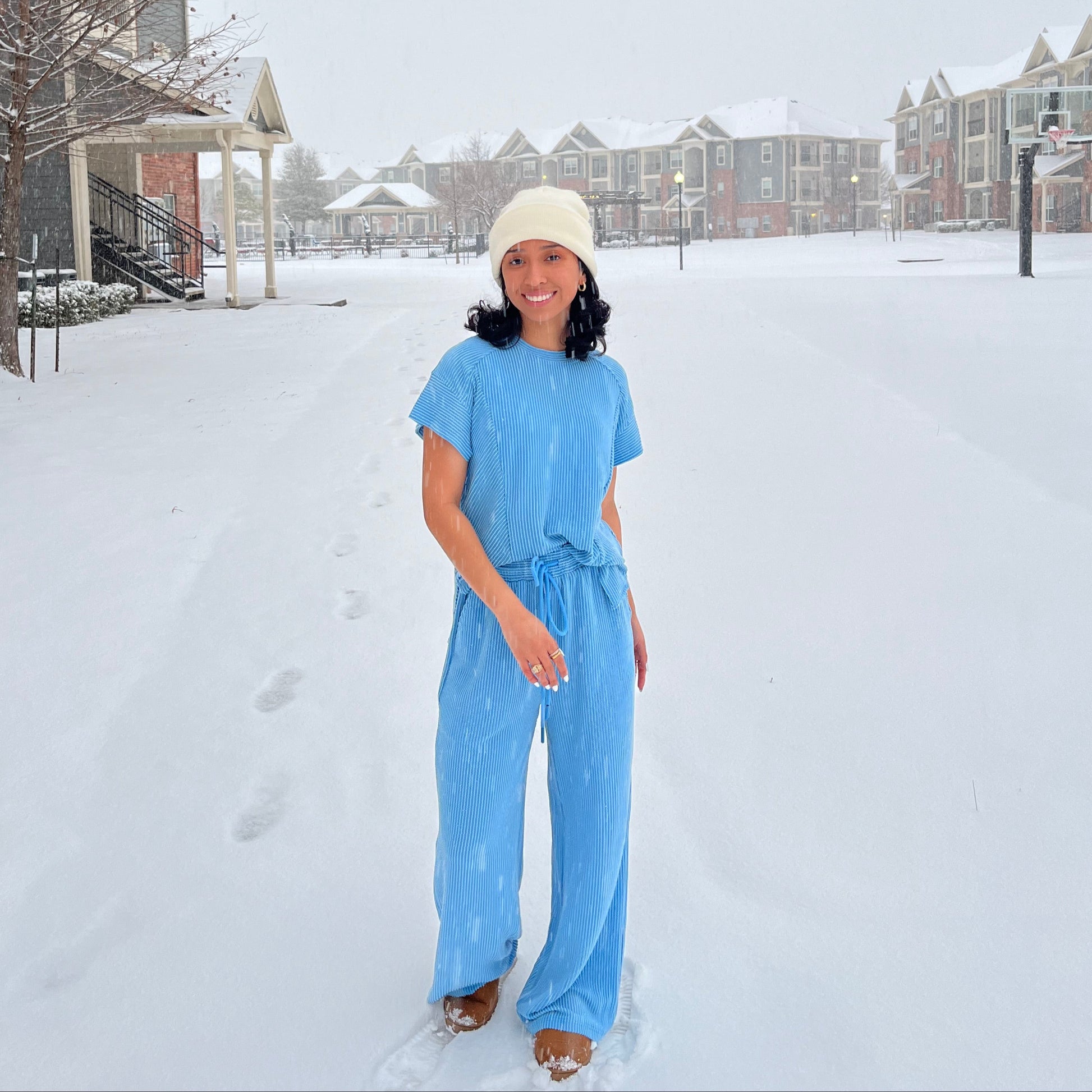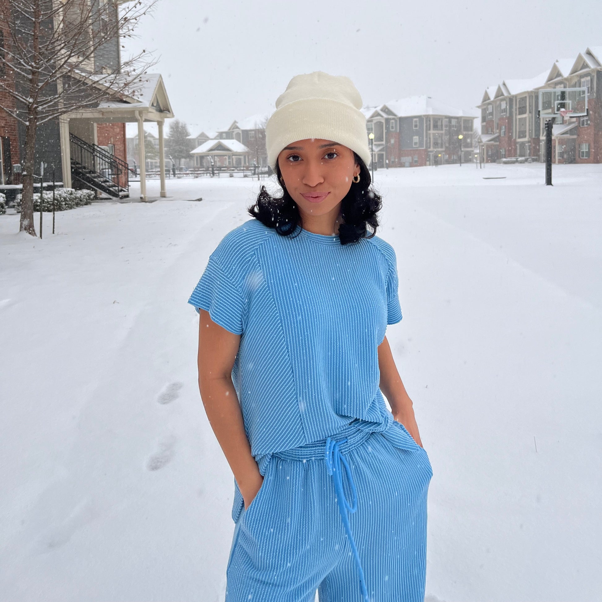 - Wide-leg pants with two pockets
