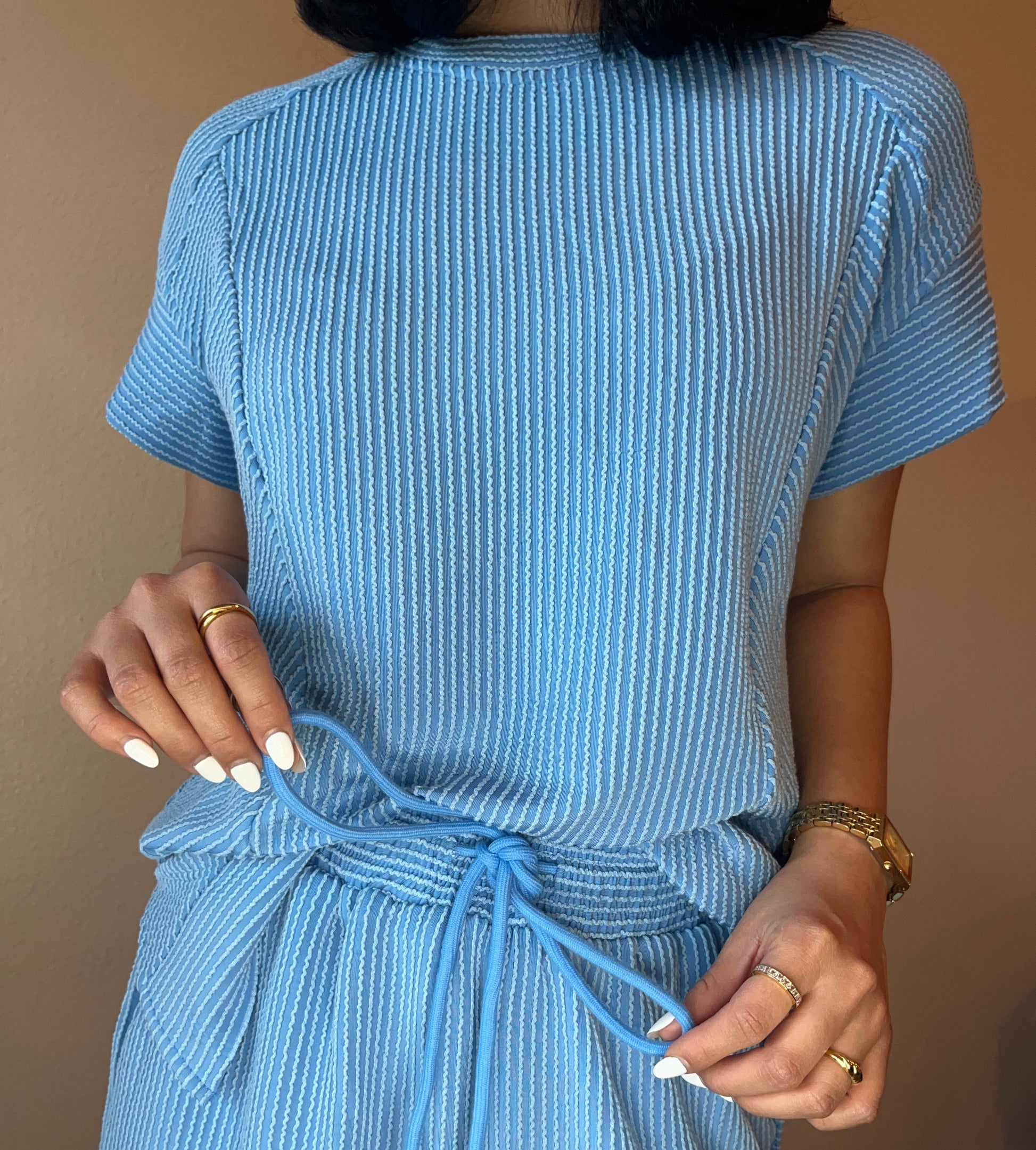 - Drawstring, fitted waist